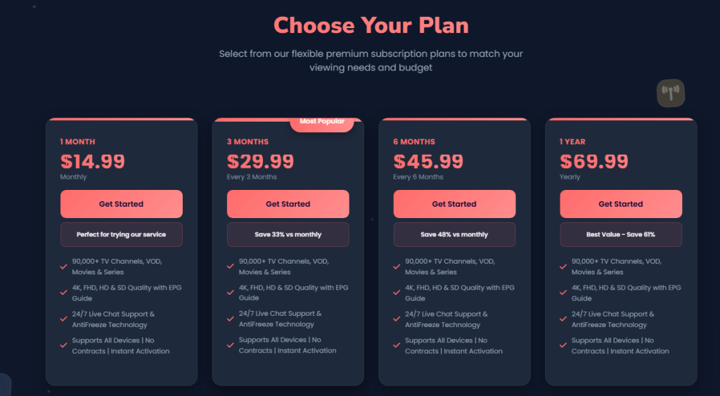 Flexible and affordable subscription plansRequires basic setup knowledge for first-time IPTV users