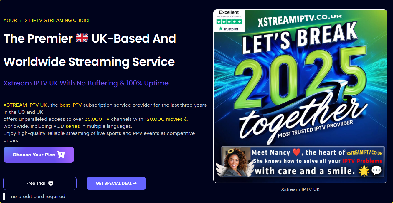 Xstream IPTV UK positions itself as a premium, UK-based IPTV provider offering live channels, on-demand content and pay-per-view events with instant activation and 24/7 support. The service advertises tens of thousands of channels and VOD titles, competitive pricing tiers, compatibility with a wide range of devices (Firestick, Android TV, Smart TVs, iOS, Windows/Mac), and reseller options for entrepreneurs.